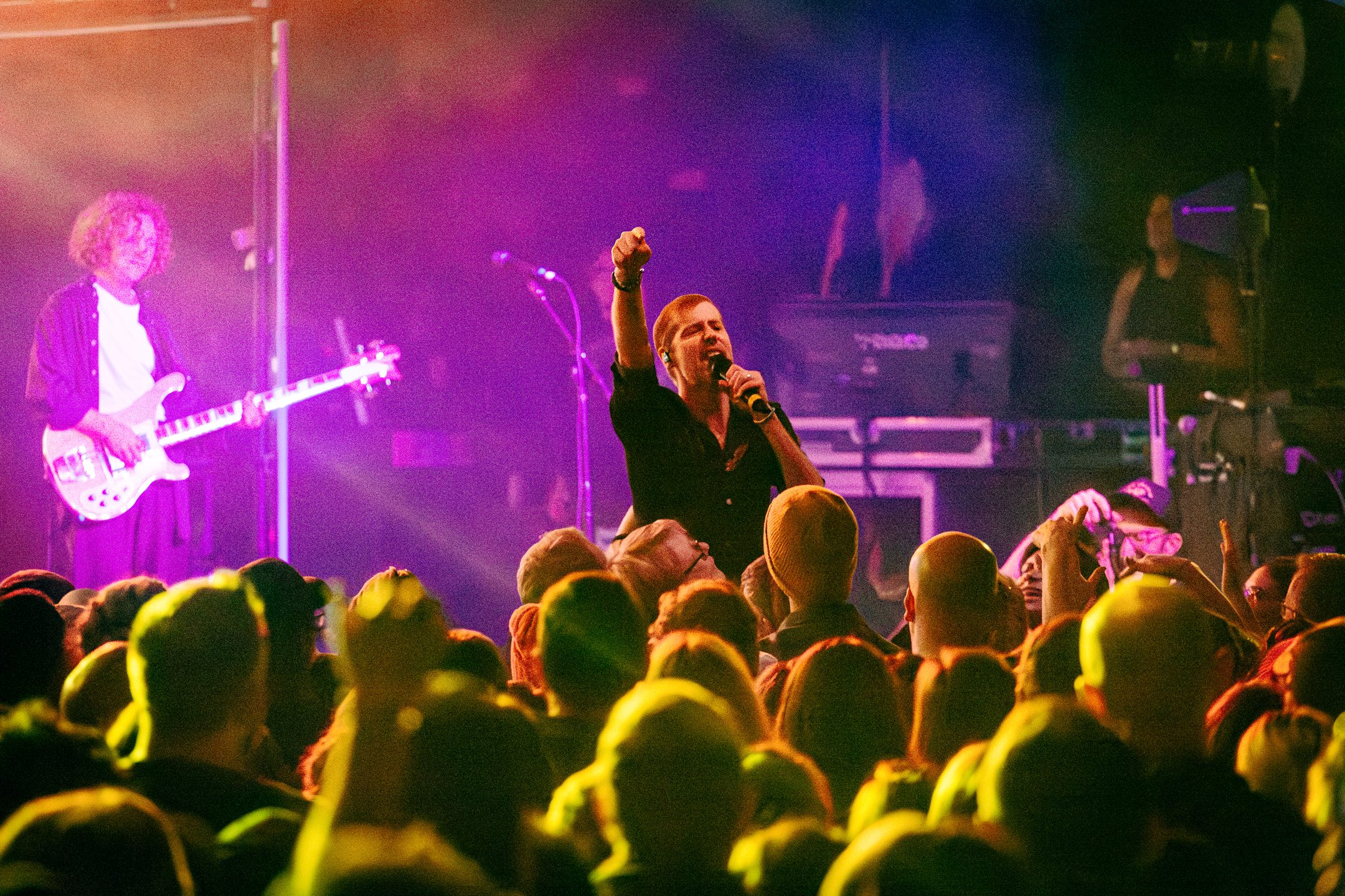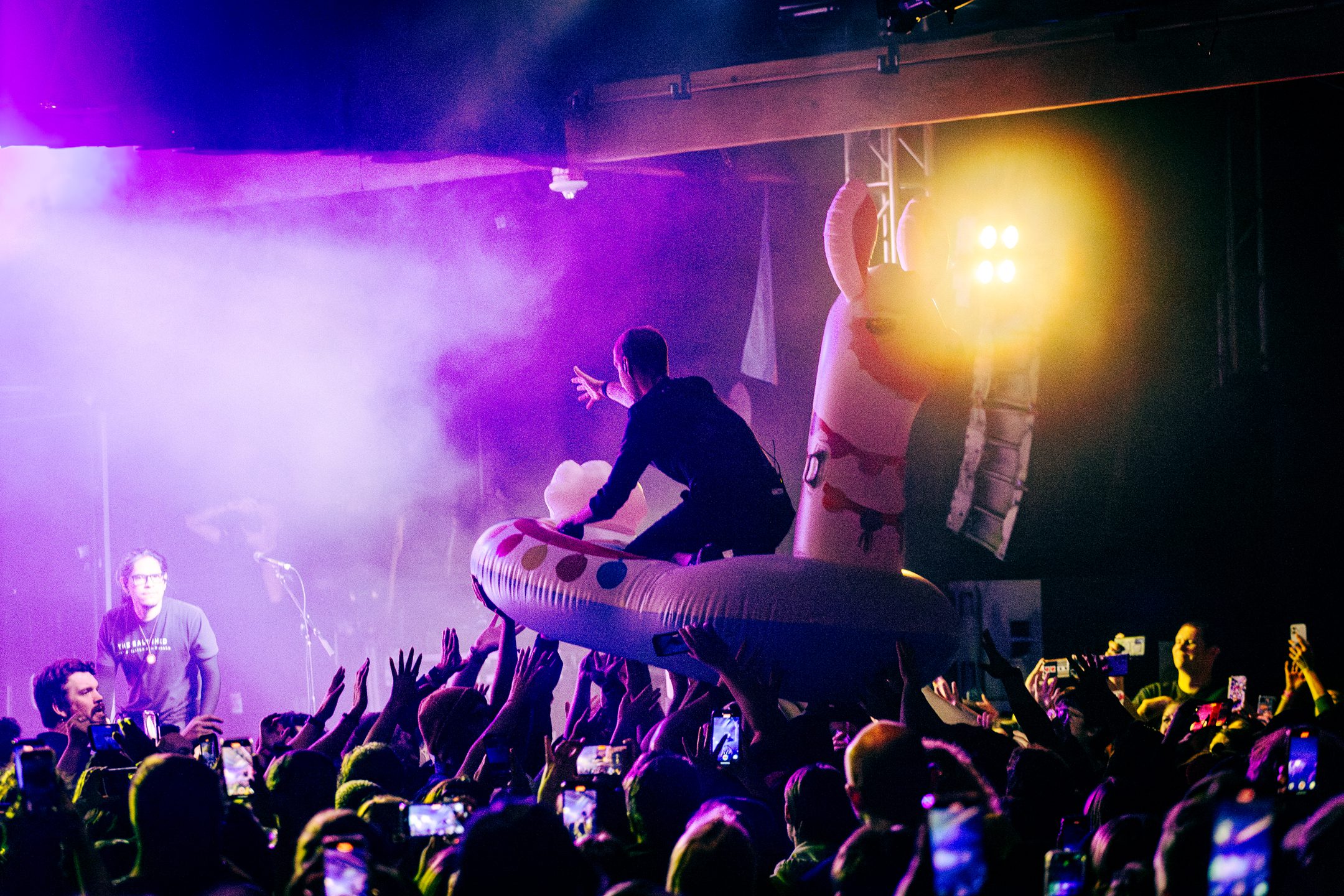 Of course, it wouldn’t be an Andrew McMahon performance without the crowdsurfing on an inflatable he’s known for. The inflatable llama made its appearance before “La La Lie,” and McMahon surfed on the llama down to the soundboard, where he picked up the name of the winner for the auction he did before the show to raise money for his charity, the Dear Jack Foundation. After announcing the winning bidder, he carried the prize — a signed drumhead —back to the front of the crowd to its respective winner.
