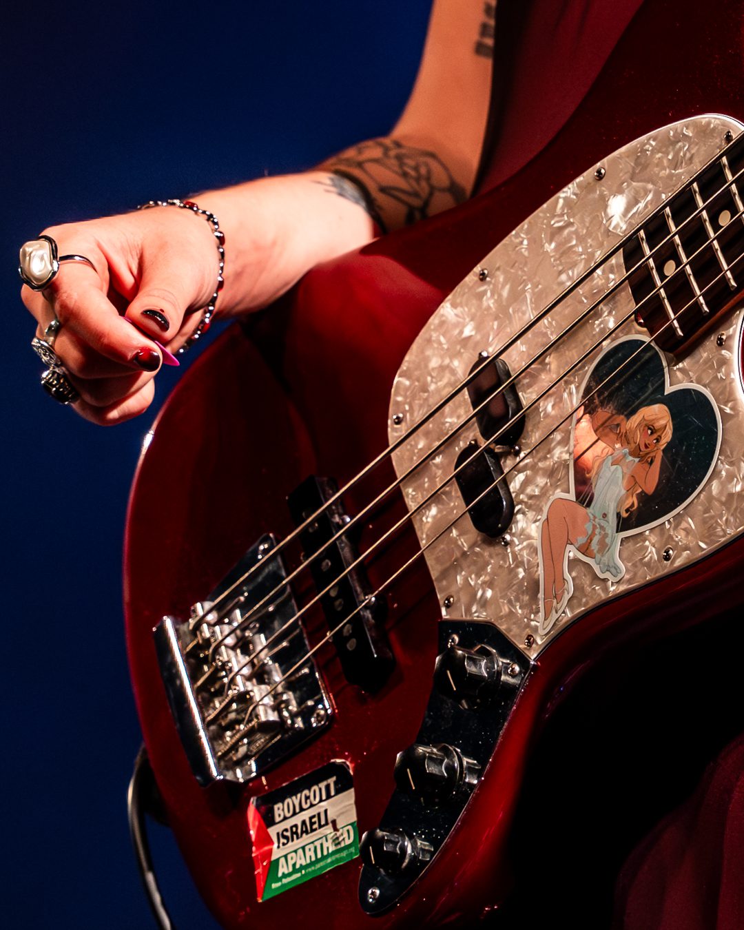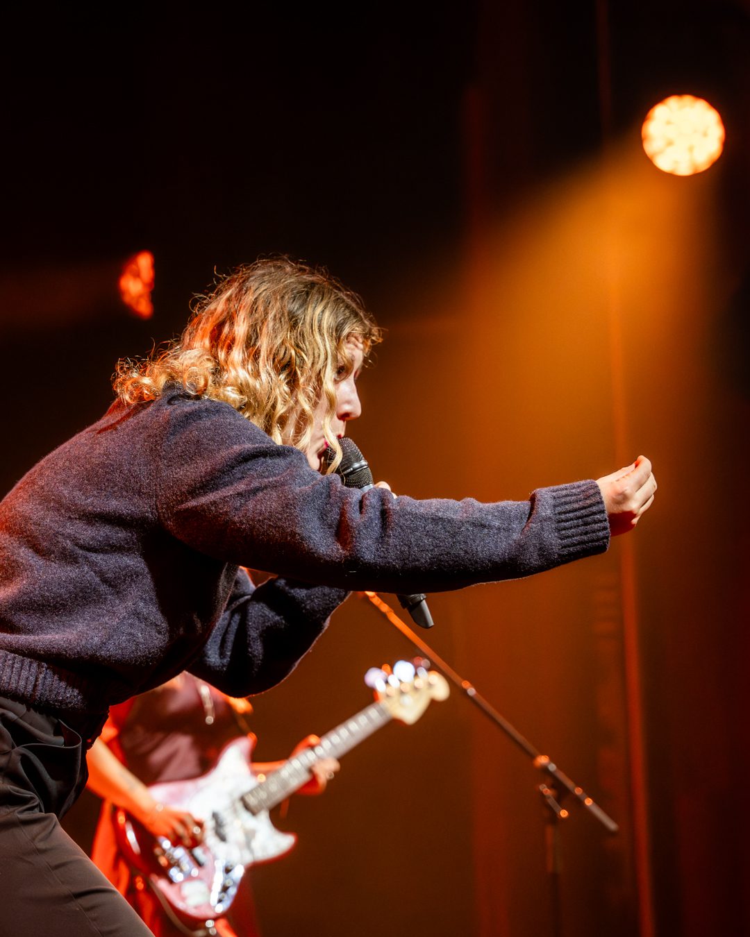 After an explosive warm-up from Enola Gay, Phoebe and Selin took the stage and immediately had the crowd wrapped around their fingers. The mosh pits started instantly, and multiple fans were lifted into the air and crowd-surfed their way to the front of the venue repeatedly. As the night went on, Lambrini Girls kept whipping out surprise after surprise. In between songs, they interacted with fans, danced with them in the pit, and they took their time to speak on important political issues like the genocide in Palestine. Phoebe even climbed up the venue’s balcony to leap back onto a sea of hands waiting to catch her.