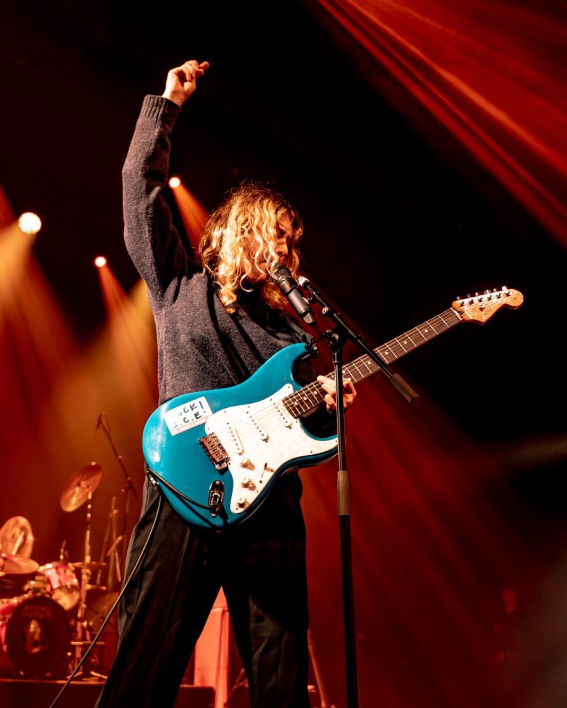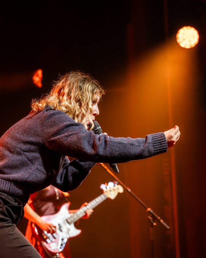 After an explosive warm-up from Enola Gay, Phoebe and Selin took the stage and immediately had the crowd wrapped around their fingers. The mosh pits started instantly, and multiple fans were lifted into the air and crowd-surfed their way to the front of the venue repeatedly. As the night went on, Lambrini Girls kept whipping out surprise after surprise. In between songs, they interacted with fans, danced with them in the pit, and they took their time to speak on important political issues like the genocide in Palestine. Phoebe even climbed up the venue’s balcony to leap back onto a sea of hands waiting to catch her.