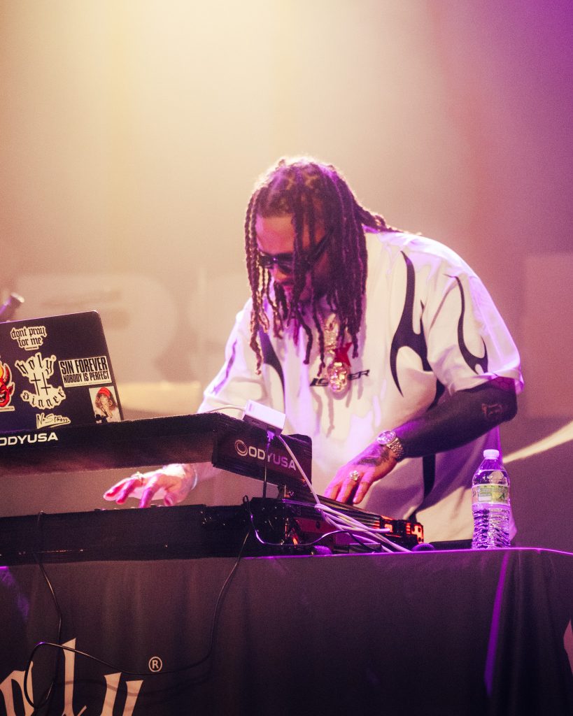 And finally, the headliner—NOTHING MORE. I went into this blind, and I could never have predicted the uproar this band would produce from the crowd once they began. Everyone in the room was inevitably slick with sweat by now, yet still beckoning for more. No—the night was not done yet. “House on Sand” was up first, and all I could see were faces lighting up, hands in the air, and an incredible production before me. Jonny Hawkins, the vocalist, had an unstoppable, eccentric demeanor that drove the fans wild. Across his chest was white-and-black paint, similar to some of the faces I spotted within the tightly packed venue. It felt as if each member was going toe to toe, trying to outdo each other’s energy—they might as well have been performing to 20,000 people. Crowd surfing went into overdrive, and the photo pit became more of a mosh pit as fans were lowered down one by one behind me. The rest of the night followed suit, with the band performing wild drum and guitar solos, as well as a cover of “WE’RE IN THIS TOGETHER” by Nine Inch Nails. NOTHING MORE left our heads spinning, and yet I found myself wanting more of this band’s insanity.