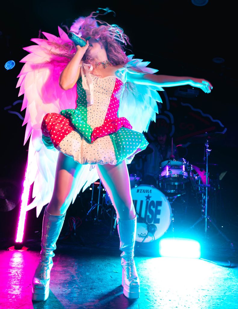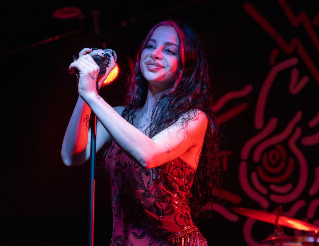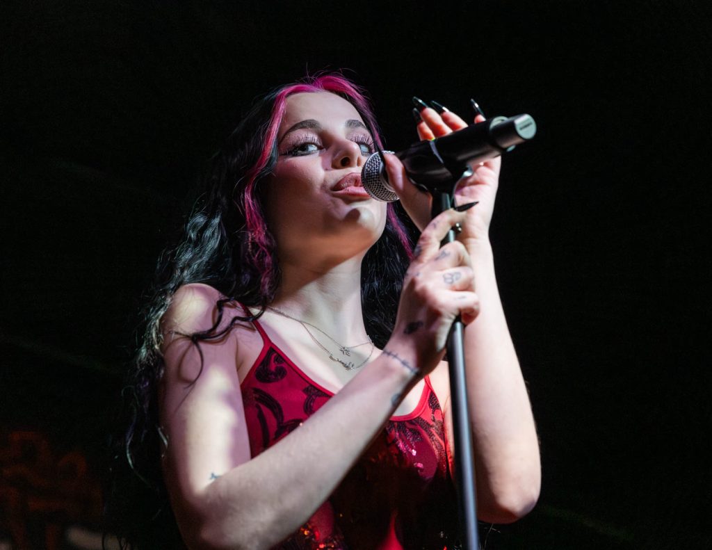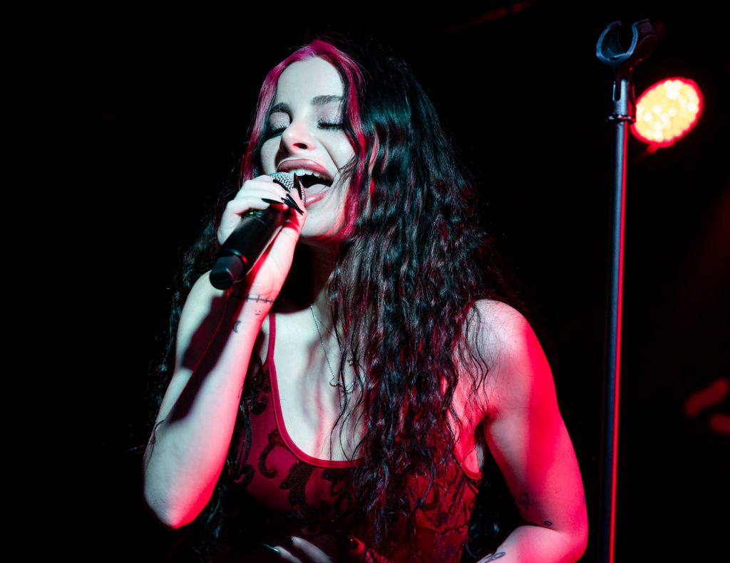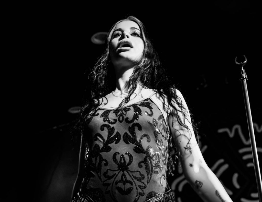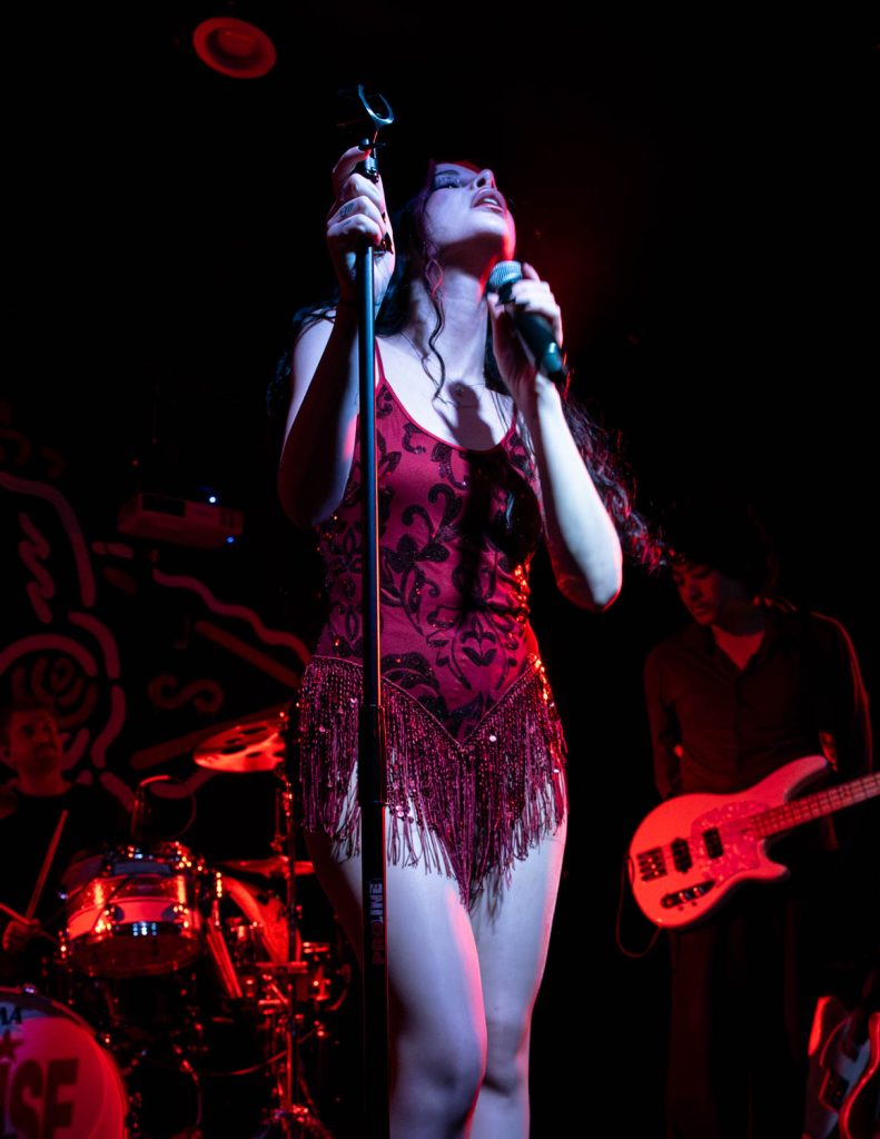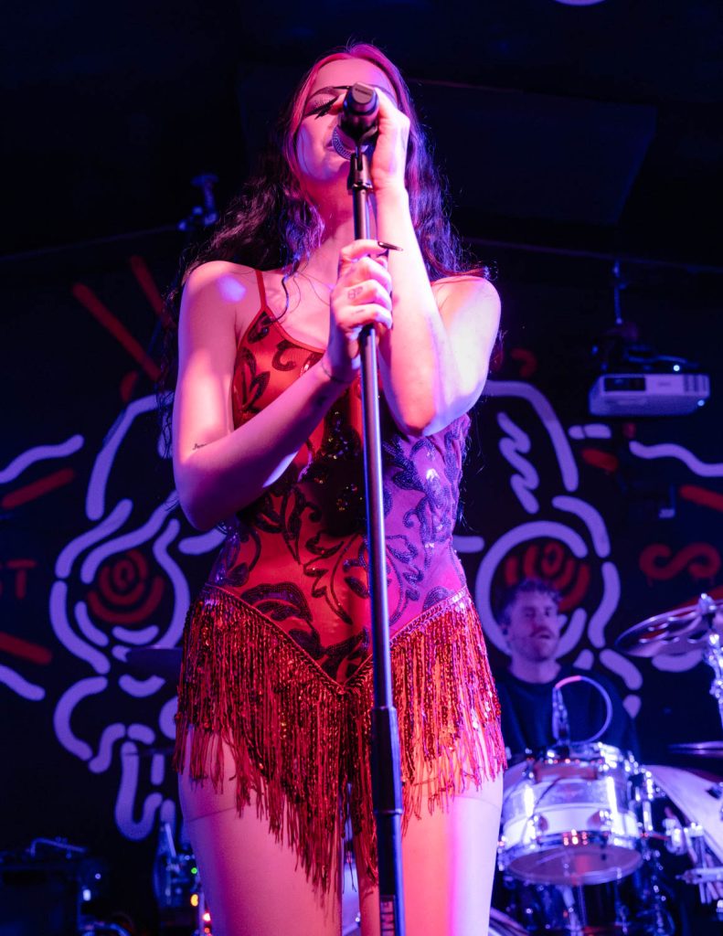 Ellise took the stage shortly after and immediately captivated me with her dark, old Hollywood vibe. She has a powerhouse voice that struck us when she opened with “Kerosene.” This song was a perfect opening song. It set the dark, yet poppy tone of the set and really stuck with me. Ellise’s professionalism as an artist shone amid a technical difficulty toward the beginning of her performance. The microphone she was talking into distorted so heavily that you couldn’t understand any of the words she was saying. At first, I thought this distortion was built into the show, but when a sound technician from the venue came up to swap the microphone, I realized that it was just a freak incident. She handled the unexpected turn in her set so well and took time to engage with her fans while the issue was swiftly resolved.