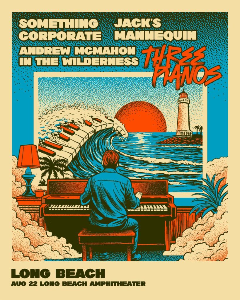 The unique production, titled “Three Pianos: An Evening with Something Corporate, Jack’s Mannequin, and Andrew McMahon in the Wilderness,” will stop in Philadelphia on August 8, Chicago on August 14, and Long Beach, California on August 22. Each night brings together all three eras of McMahon’s catalog — Something Corporate, Jack’s Mannequin, and Andrew McMahon in the Wilderness — performed on three different pianos that represent distinct chapters of his life and songwriting journey.