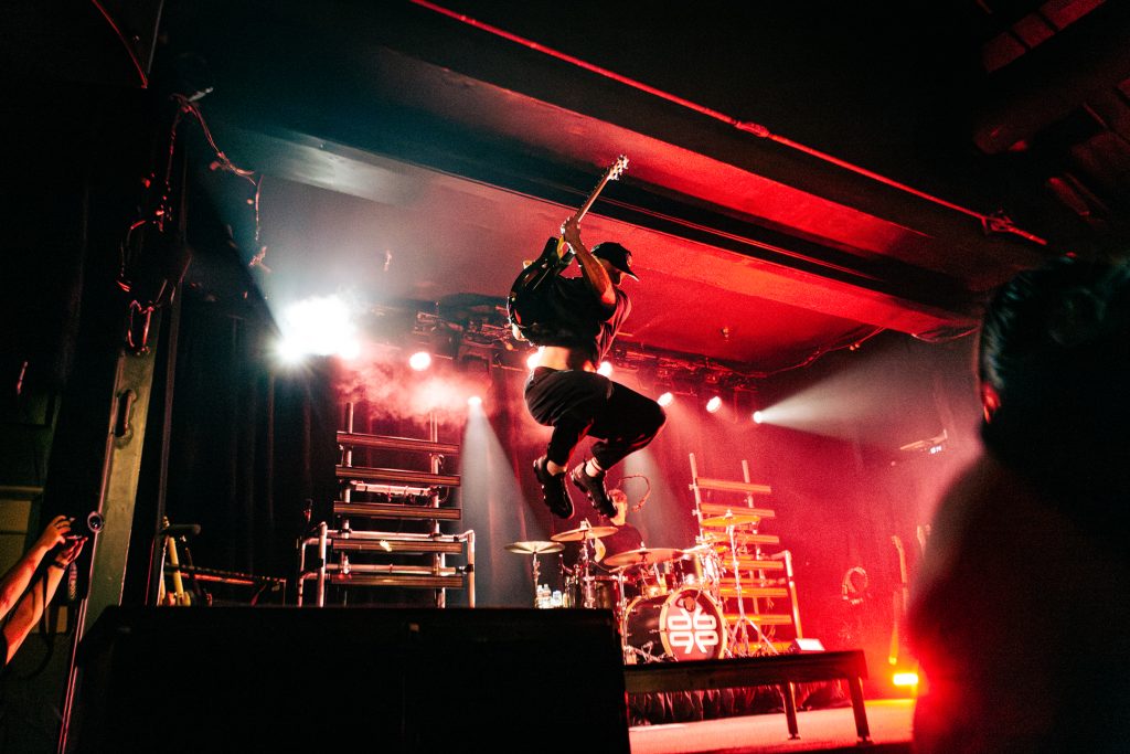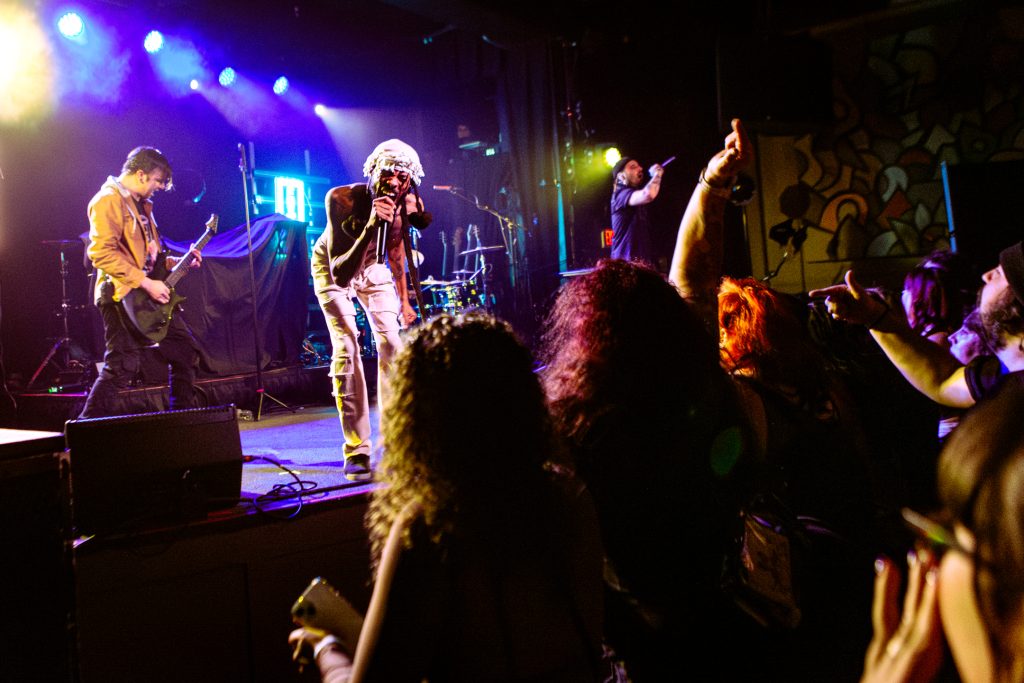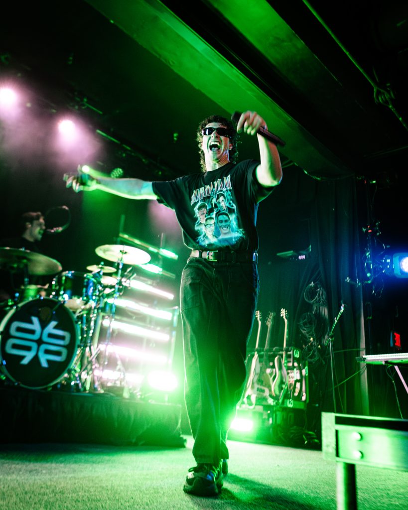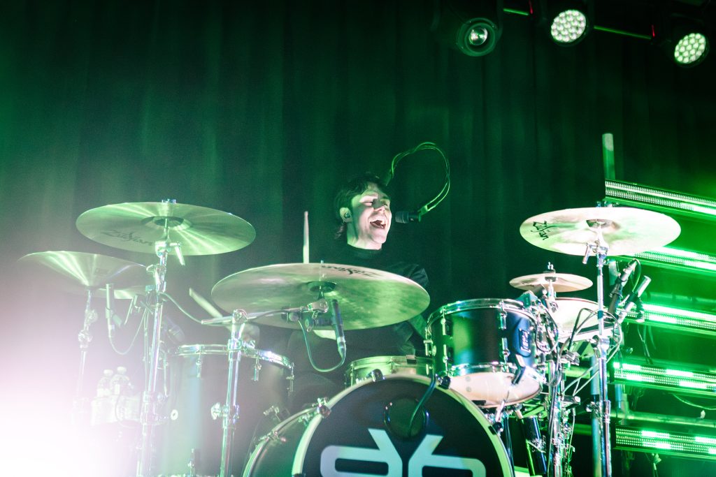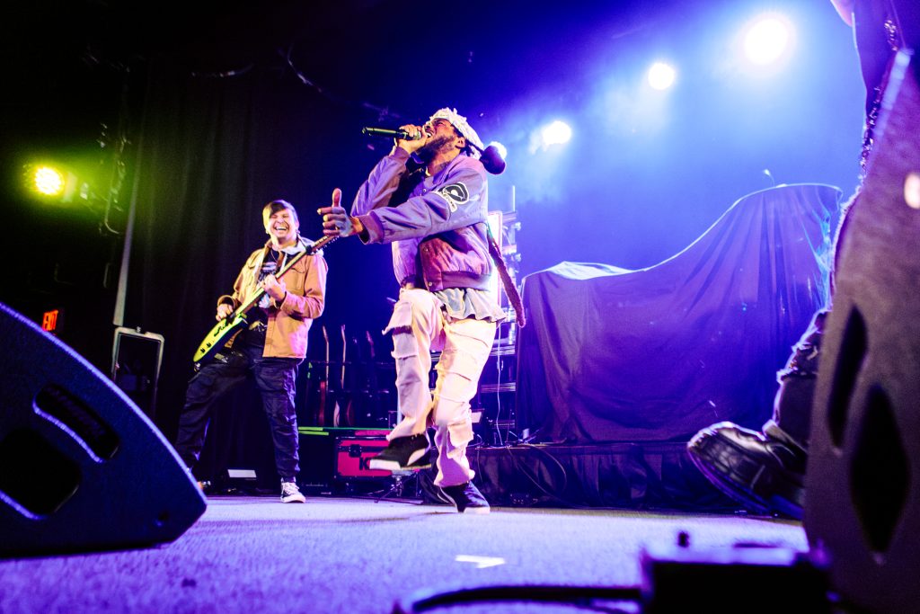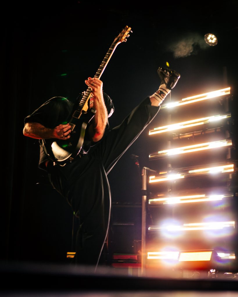 Sace6, a rising alternative pop trio from Los Angeles, opened the evening with their emotionally-charged lyrics and powerful guitar riffs. Nu-metal outfit Dropout Kings, from Phoenix, Arizona, followed and dialed the energy up to 100. Lead vocalists William “Black Cat Bill” Lauderdale and Rob Sebastian fed off each other’s energy, dancing around one another on stage and effortlessly flowing from Lauderdale’s rapping to Sebastian’s singing. The quartet interacted with one another on stage throughout the set, often jokingly bumping into each other and engaging the audience in a way that made their set feel like a dance party with friends. Dropout Kings comprised the majority of their set from Yokai, their latest album released in honor of their founding vocalist shortly after his death last year. They ended their 11-song set with “GlitchGang” from their 2021 album of the same name.