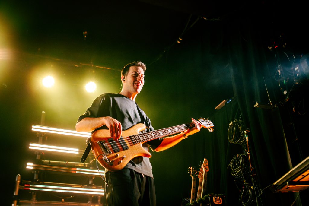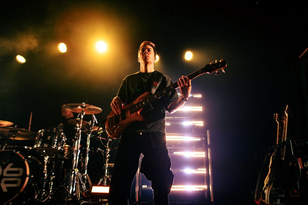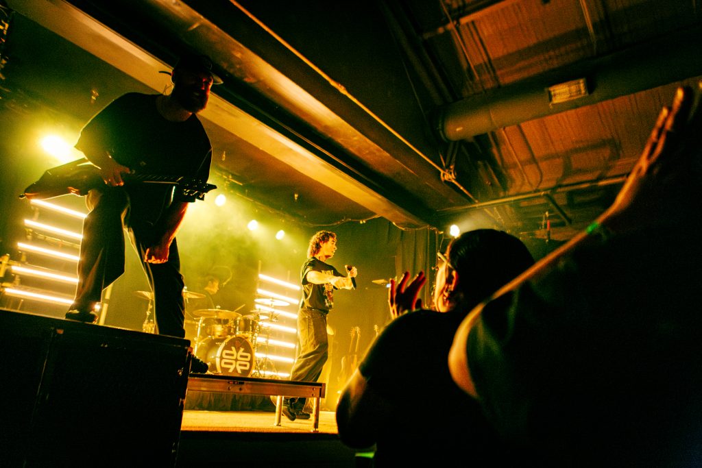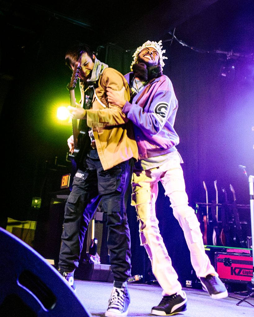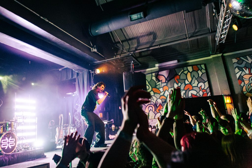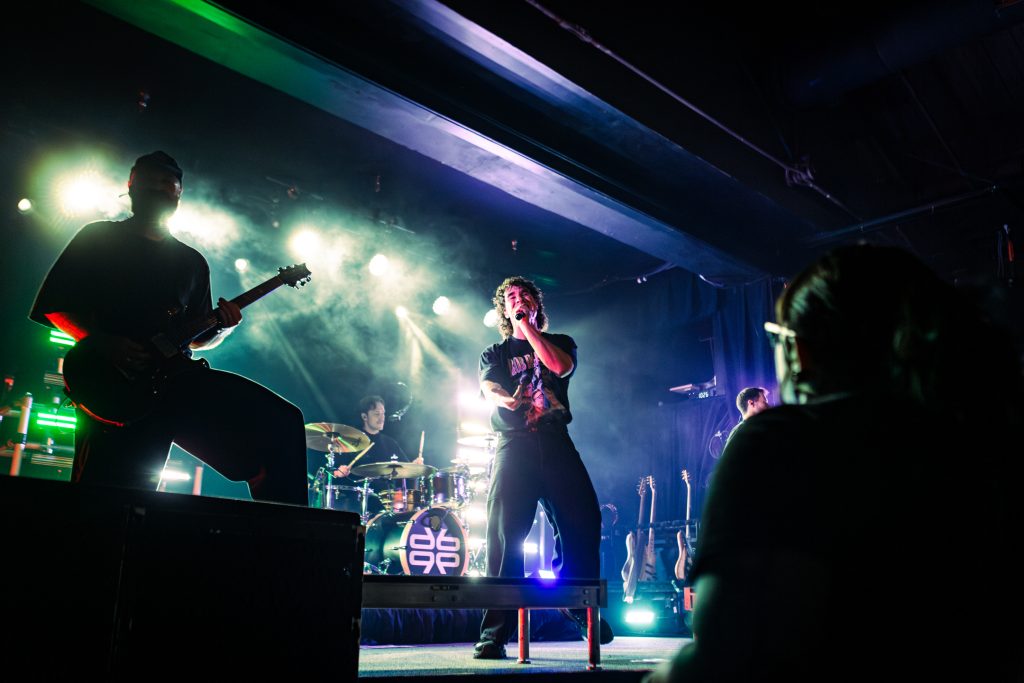 Sace6, a rising alternative pop trio from Los Angeles, opened the evening with their emotionally-charged lyrics and powerful guitar riffs. Nu-metal outfit Dropout Kings, from Phoenix, Arizona, followed and dialed the energy up to 100. Lead vocalists William “Black Cat Bill” Lauderdale and Rob Sebastian fed off each other’s energy, dancing around one another on stage and effortlessly flowing from Lauderdale’s rapping to Sebastian’s singing. The quartet interacted with one another on stage throughout the set, often jokingly bumping into each other and engaging the audience in a way that made their set feel like a dance party with friends. Dropout Kings comprised the majority of their set from Yokai, their latest album released in honor of their founding vocalist shortly after his death last year. They ended their 11-song set with “GlitchGang” from their 2021 album of the same name.