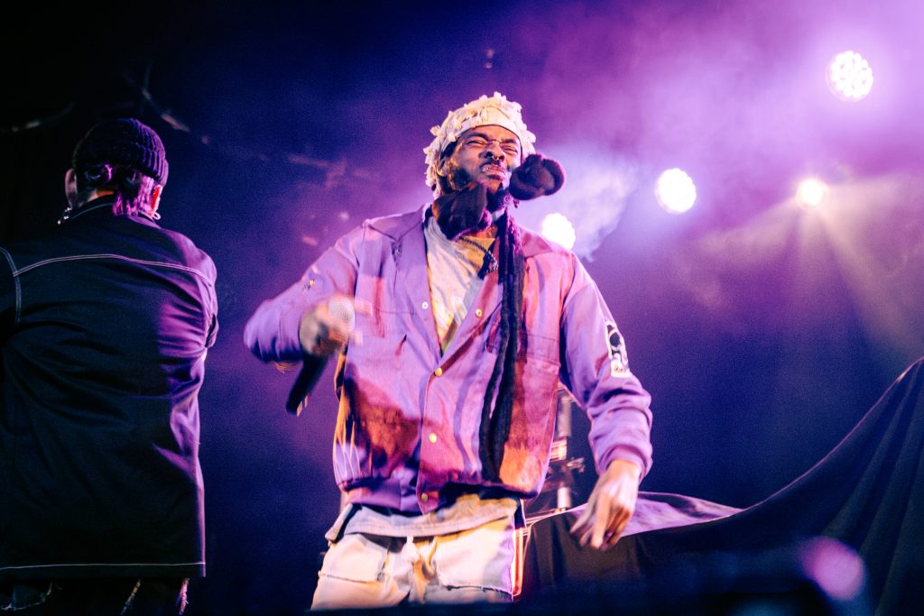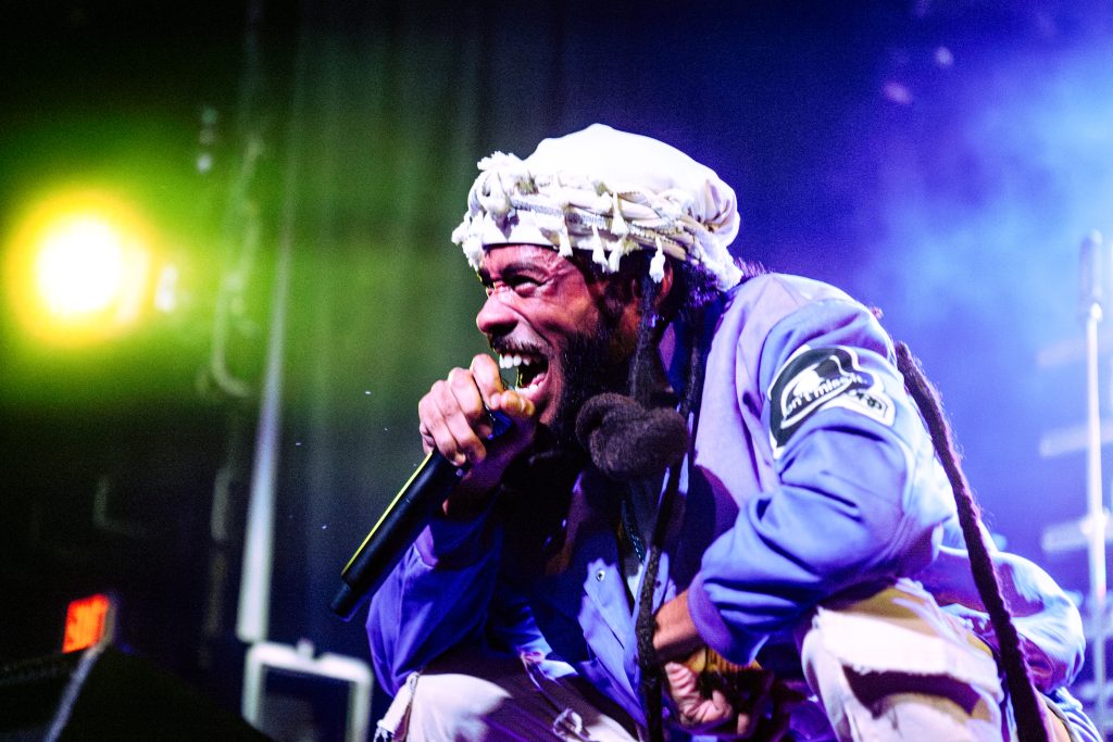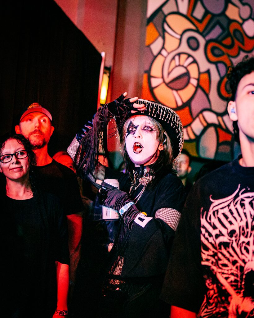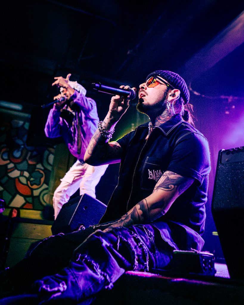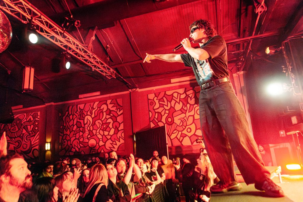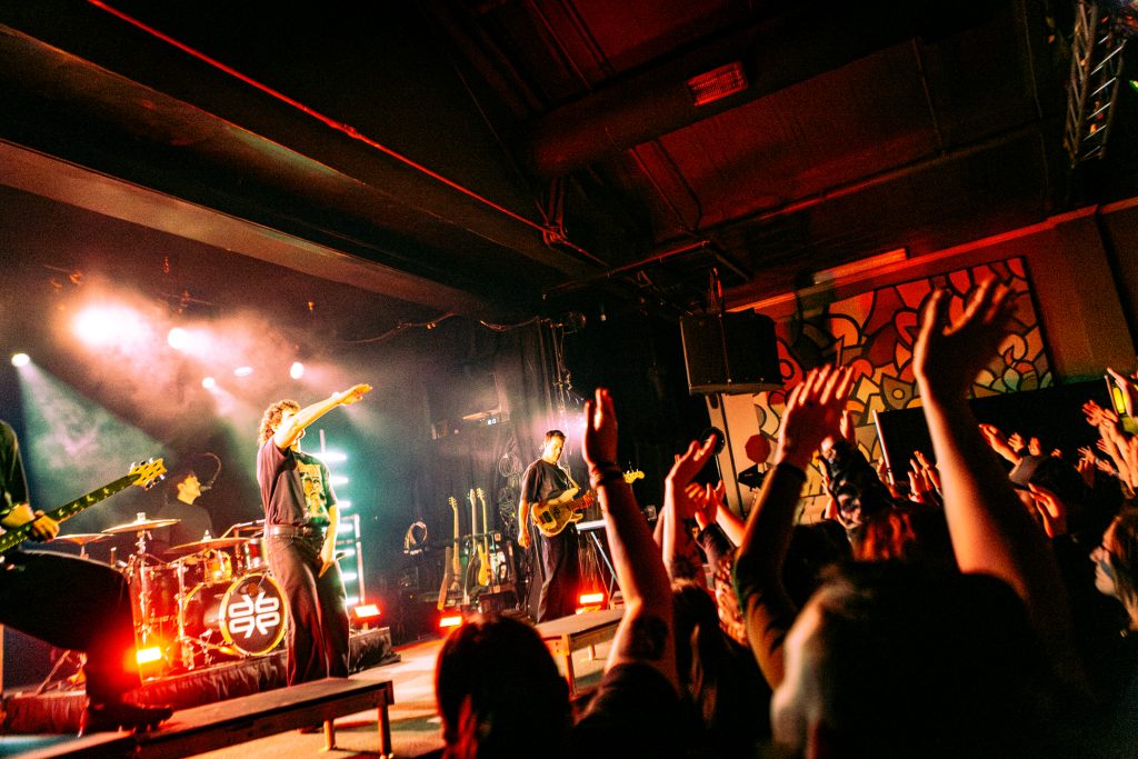 Sace6, a rising alternative pop trio from Los Angeles, opened the evening with their emotionally-charged lyrics and powerful guitar riffs. Nu-metal outfit Dropout Kings, from Phoenix, Arizona, followed and dialed the energy up to 100. Lead vocalists William “Black Cat Bill” Lauderdale and Rob Sebastian fed off each other’s energy, dancing around one another on stage and effortlessly flowing from Lauderdale’s rapping to Sebastian’s singing. The quartet interacted with one another on stage throughout the set, often jokingly bumping into each other and engaging the audience in a way that made their set feel like a dance party with friends. Dropout Kings comprised the majority of their set from Yokai, their latest album released in honor of their founding vocalist shortly after his death last year. They ended their 11-song set with “GlitchGang” from their 2021 album of the same name.