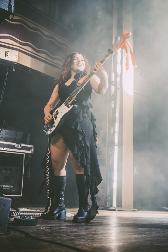 When Maggie Lindemann strutted on stage in a long black dress and tall, thin stiletto heels, I fully expected the show to unravel at a slower pace, although I was naive to assume such with high intensely high-voltage her music is. Immediately, the guitars whined, the bass thumped through your chest, the drums slammed with a force that left no room for hesitation – there was no time to catch your breath, no time to adjust to the sudden shift in atmosphere; Lindemann stomped her foot ont he gas and crashed into the crowd full-throttle, imploring them to join in on the mayhem without warning.