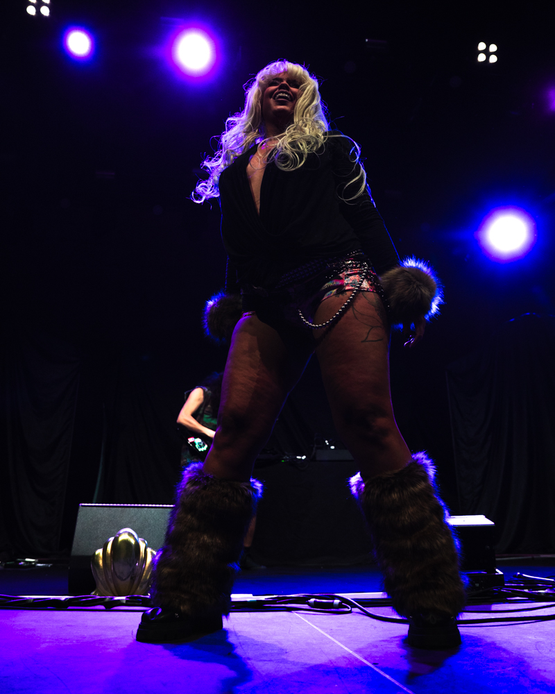 By the time I arrived, the line to get in wrapped around the building and down the street. The Mission is one of my favorite venues for a reason. It’s built to hold a crowd safely and smoothly, the perfect place for a big, chaotic party. Ashnikko’s stage was a peek into her world: a trippy, feminine wonderland. Her sparkly, whimsical outfit matched the aesthetic, and the audience followed wearing bows, cute skirts, and glitter.