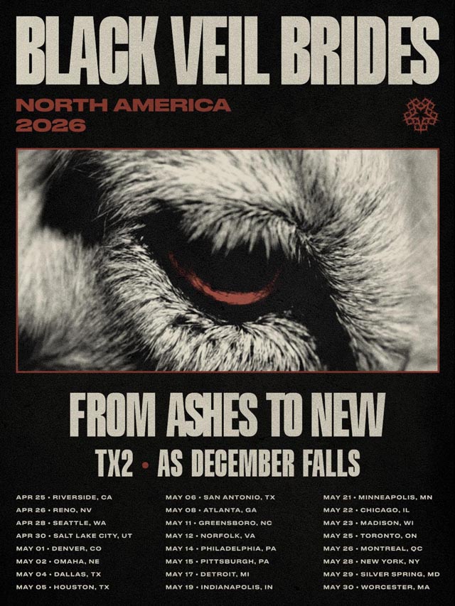 In support of the release, Black Veil Brides will embark on a 24-date North American headline tour beginning April 25 in Riverside, California, and concluding May 30 in Worcester, Massachusetts.