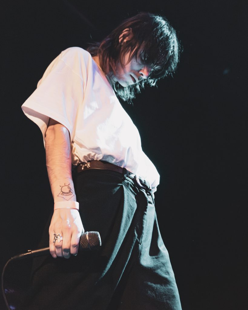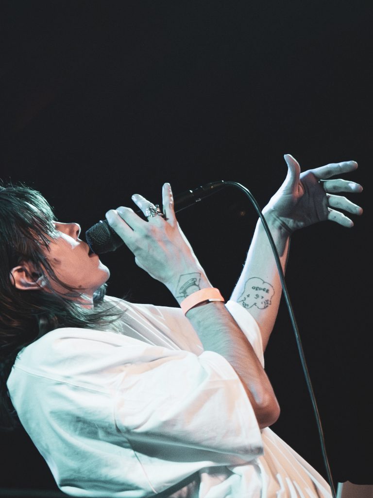 The general vibe of the room was so friendly and happy. Every person that I saw seemed to be enjoying themselves — and if it were a contest, the three girls at the center of the barricade would’ve won. The whole time, they jumped, danced, and sang to every song, even when those around them didn’t. I spent most of my time watching Quarters on the second floor of the venue, which had a perfect view of the stage. As I was perched up in the loft, I was shocked to hear the first few notes of one of my favorite songs, “Kiwi,” just about halfway through the show. I imagined “Kiwi” would’ve been a closing or encore song, but they surprised me by playing “Blue Copper” and “T-Love” for their encore. The setlist was a perfect blend of introductions to new songs as well as nostalgia for my favorites. There is only one thing I would’ve tweaked: I would have been elated to hear “Jaded.”